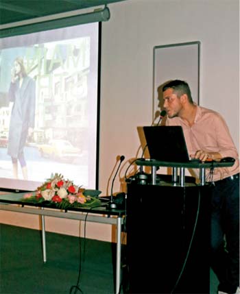 在麵料展期間,主辦方為采購商和參觀者舉辦了不同風格的流行趨勢發布會及講座。這些講座將流行時尚貫穿到服裝企業、設計公司、時尚機構及麵料研發企業。展會第二天,法國的時尚趨勢谘詢機構Peclers Paris 趨勢與風格總監Massimo Carminati 做了一場名為《2015/16 年秋冬女裝趨勢》的講座。