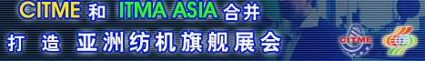 首屆名為“中國國際紡織機械展覽會暨ITMA亞洲展覽會”(ITMA ASIA+ CITME 2008)將於2008年7月27日至7月31日在上海新國際博覽中心閃亮登場,展出麵積超過10萬平方米。該合並展覽會將成為亞洲地區規模最大、專業化程度最高、技術水平最先進的紡織機械展覽會。