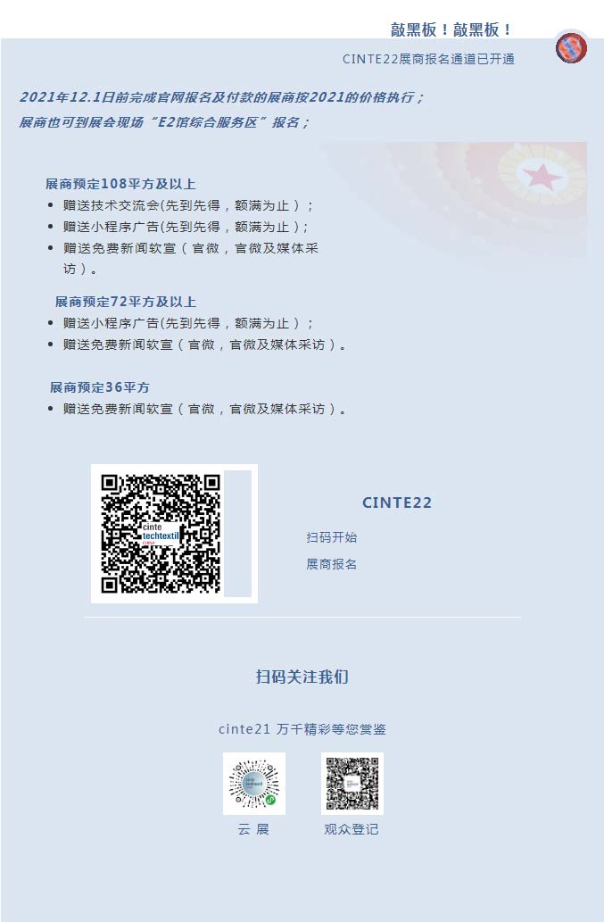 6月22日-24日,上海新國際博覽中心您將在CINTE21現場展位亮相。