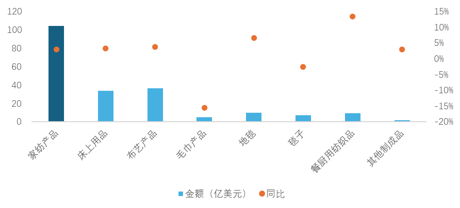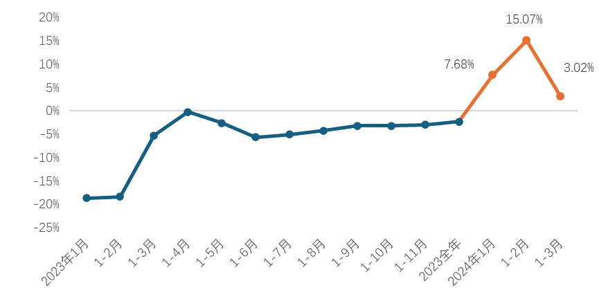 圖3. 2023年-2024年一季度我國家紡產品出口額增速